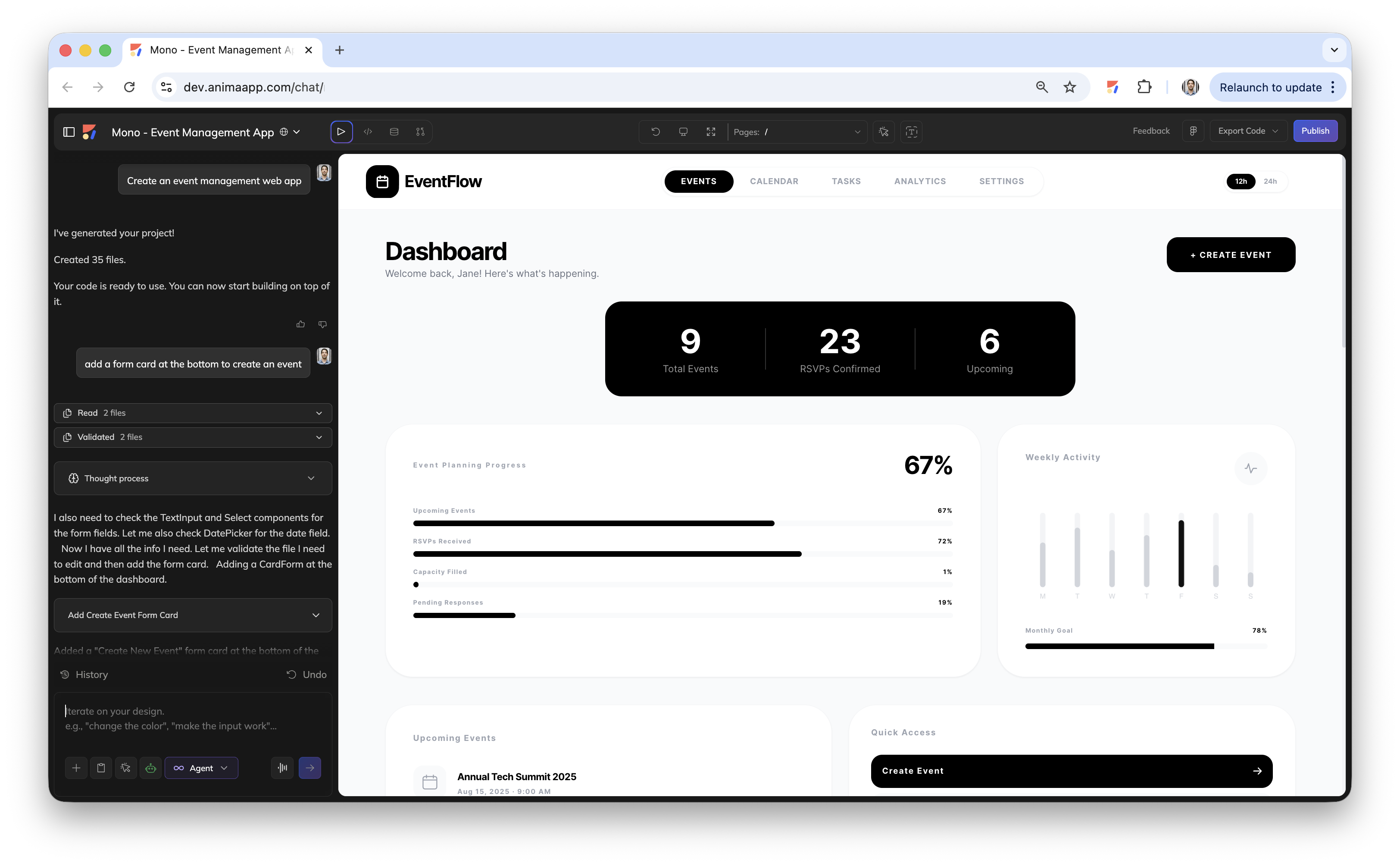 Prompt with it. When starting a new project in Anima, select the design system so the agent generates screens and flows that follow its visual language.