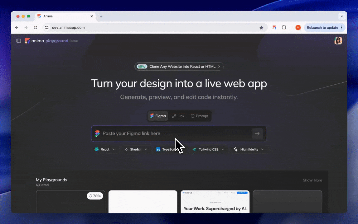 - Anima Playground will open with the captured page data, where you can keep editing and prompt your changes.