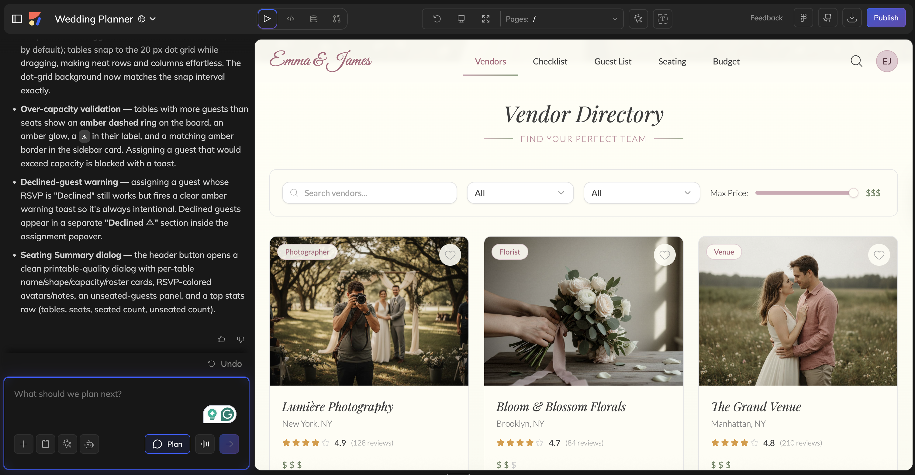 - Refactoring or restructuring your app: Your app has expanded, and its structure requires reorganizing components, merging duplicate sections, or enhancing the page hierarchy. Plan Mode assists you in visualizing what needs to move where before making changes, so you avoid breaking things along the way.