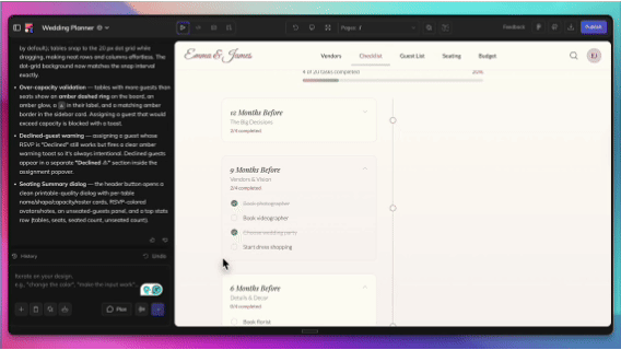- Making design changes across multiple pages: Your app currently uses a light theme, and you want to add a dark mode that functions across every screen, dashboard, settings, modals, and more. You could prompt this all at once, but with so many moving parts, the AI is more likely to miss components or apply styles inconsistently. With Plan Mode, it first maps out every section and component that needs updating, then systematically works through the plan, resulting in fewer mistakes and consistent dark mode everywhere.